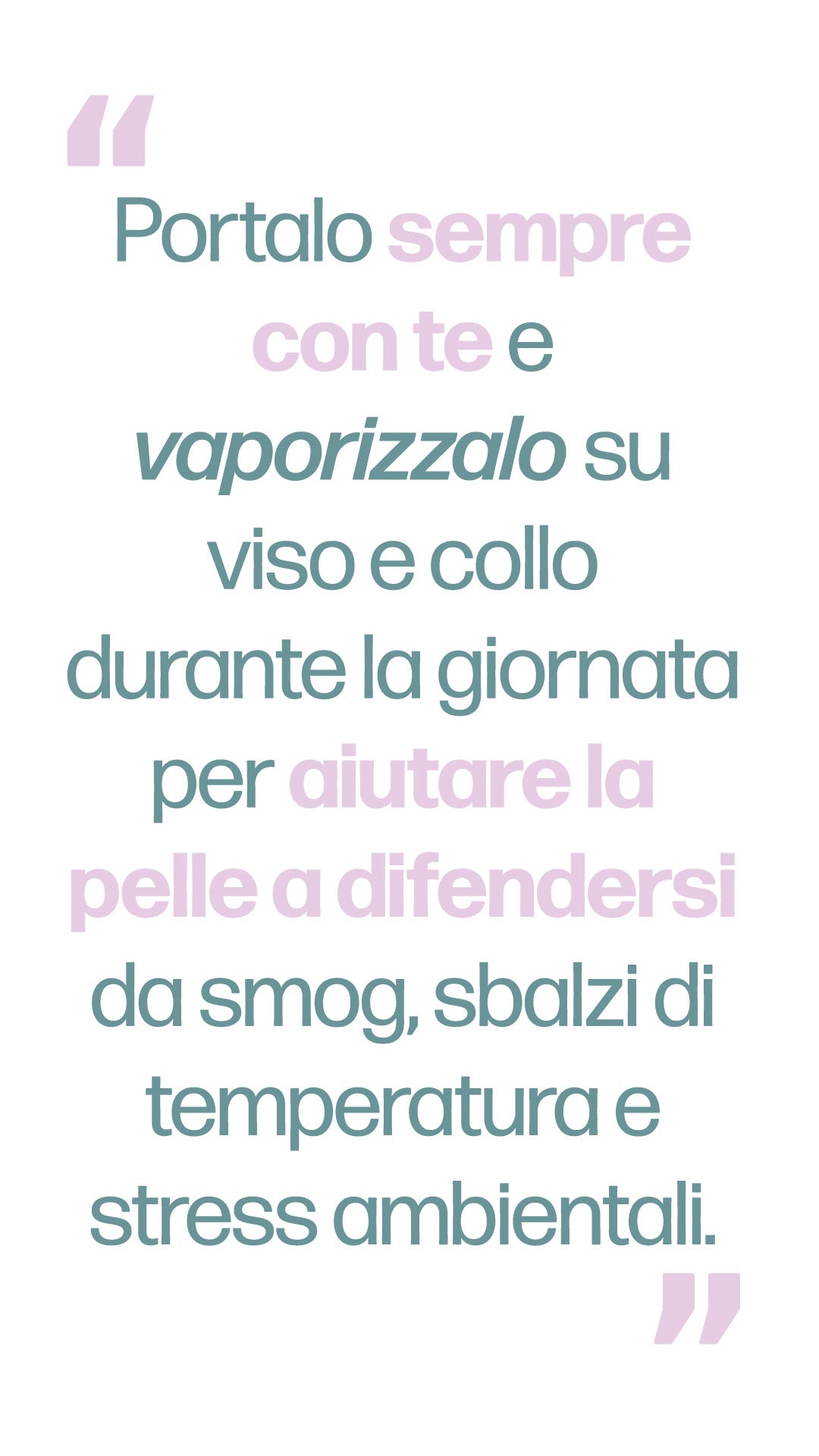 Blue Breeze on the go ha una texture leggera e impalpabile: vaporizzala sul viso ogni volta che ne senti il bisogno per una carica di freschezza e idratazione.